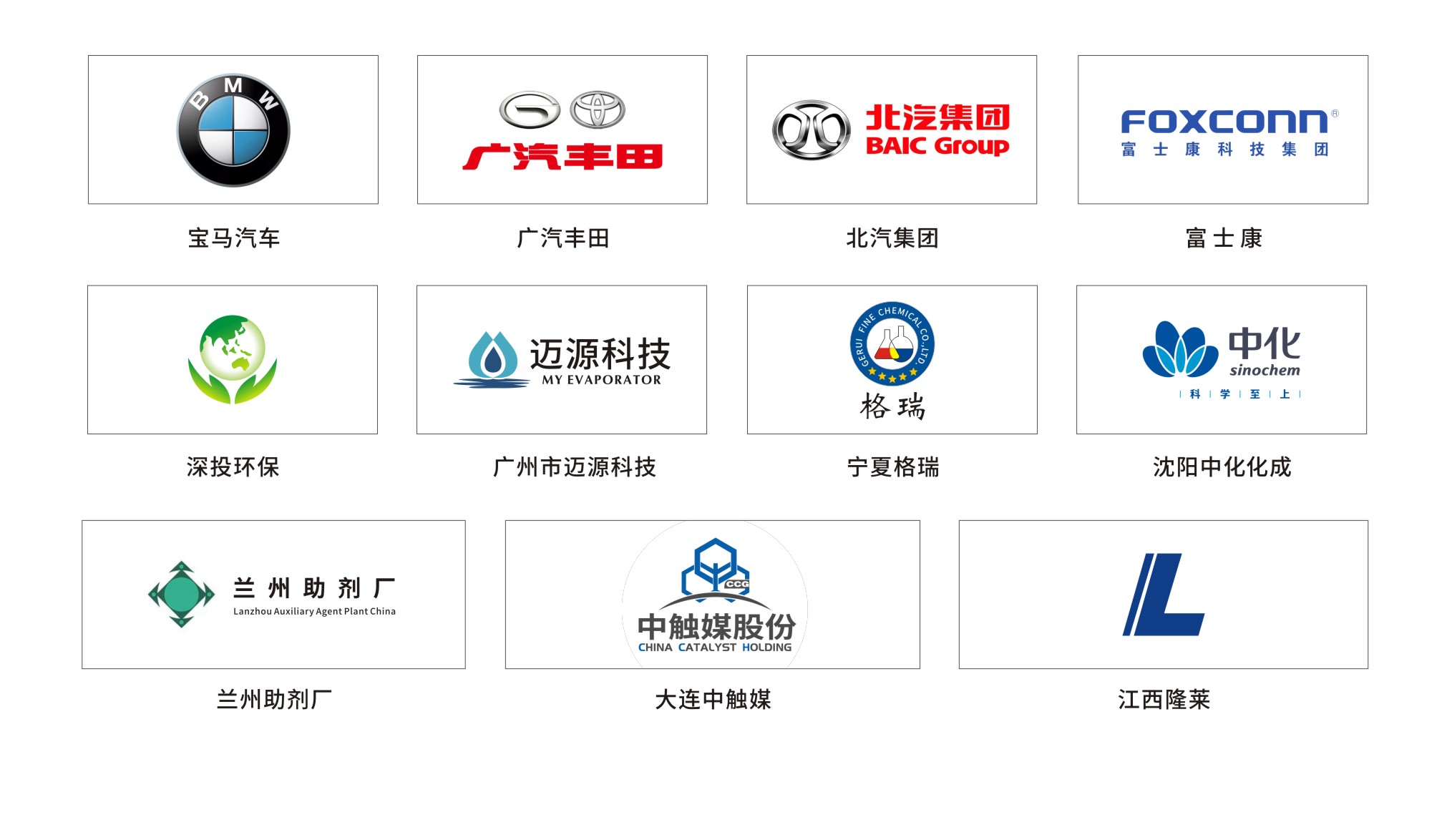 目前,公司已在成都、大連、蘇州、內蒙古等地設立了辦事機構,服務的客戶包括深投環(huán)保、寶馬汽車、富士康、廈門嘉戎、寧夏格瑞,蘭州助劑廠、江西隆萊、大連中觸媒等行業(yè)內領頭企業(yè),在國內落地項目有170多家。